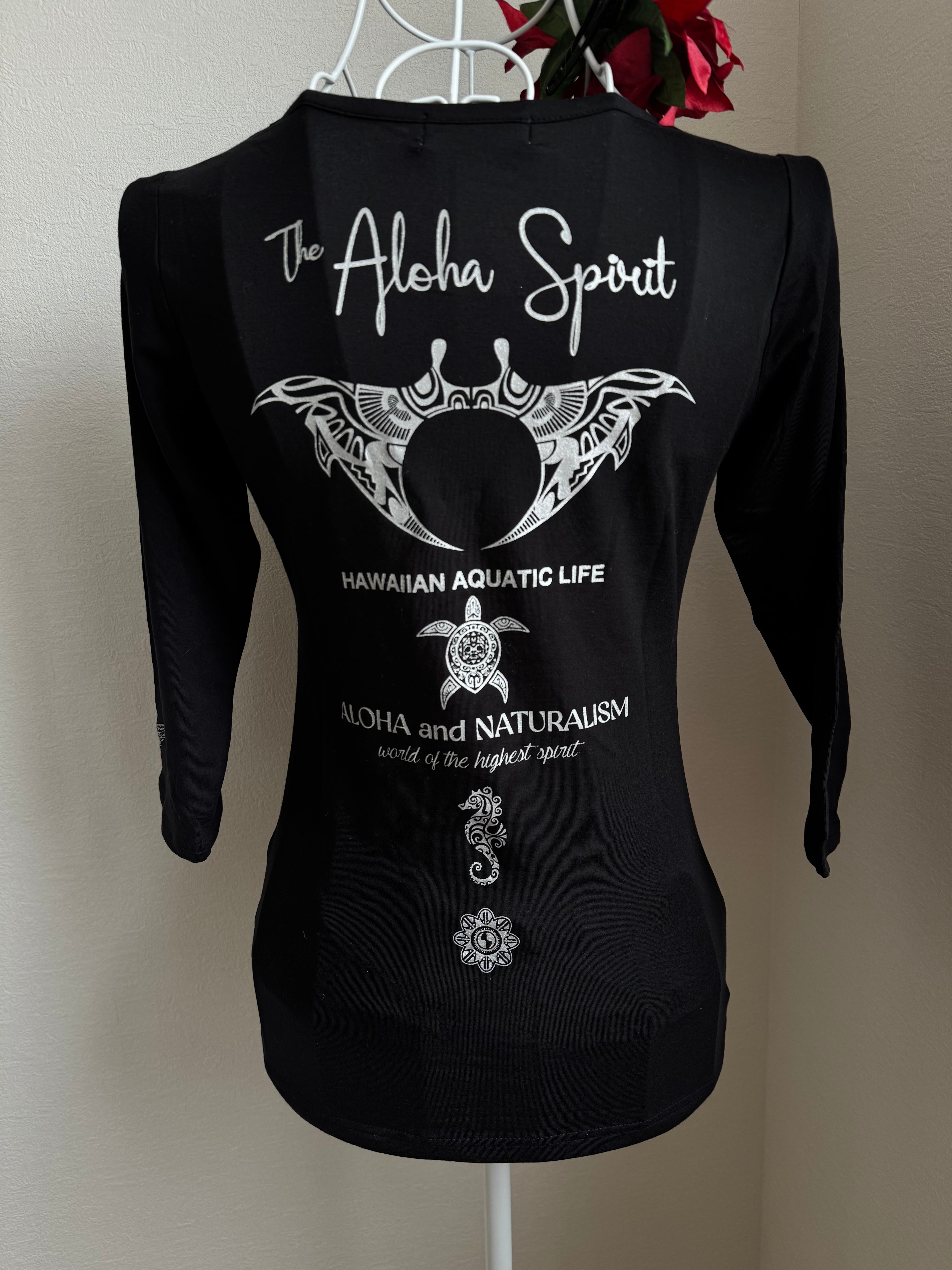 ストレッチ7分袖 アロハナチュラリズム【ブラック×シルバー】