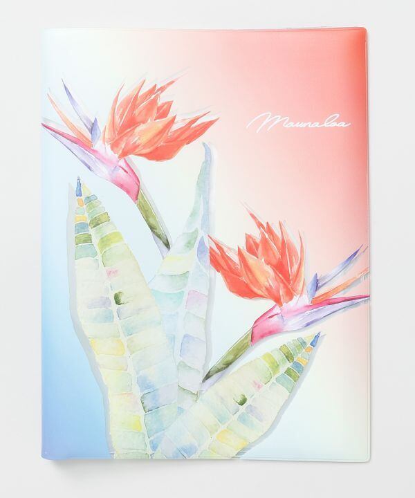 優雅なバードオブパラダイスを水彩タッチで描いたA4ファイル。グラデーションの背景が南国の空気を演出し、20ポケットのリフィル付きで機能性も抜群。フラレッスンやオフィスシーンに華やかさを添えてくれます。
